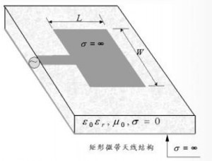 常用的微帶天線是在一個(gè)薄介質(zhì)基片上,一面附上金屬薄層作為接地板,另一面用光刻腐蝕等方法做出一定形狀的金屬貼片,利用微帶線、同軸探針或電磁耦合對(duì)貼片饋電,這構(gòu)成了微帶天線。如圖1。